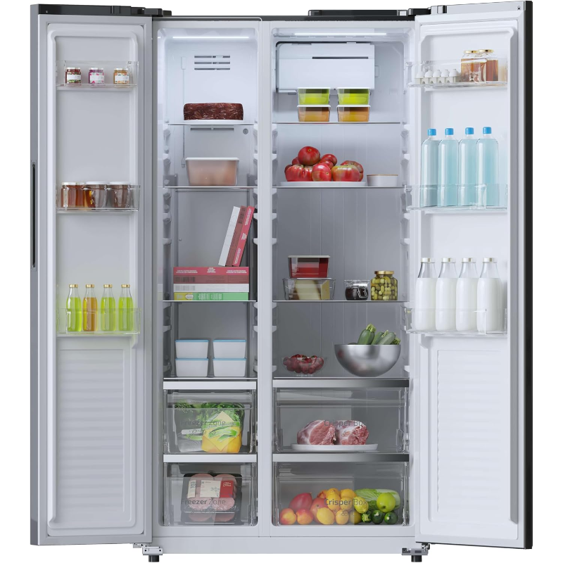 El Cecotec Bolero CoolMarket SBS es un frigorífico americano Side by Side diseñado para hogares que requieren una gran capacidad de almacenamiento y una organización eficiente de los alimentos. Es ideal para familias numerosas, personas que hacen compras semanales o quienes desean mantener sus alimentos frescos durante más tiempo sin renunciar al diseño moderno y funcional.