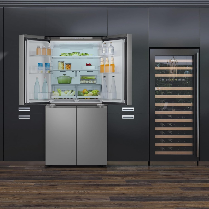 El LG Frigorífico Americano Combi 508-641L Door Cooling es un electrodoméstico de refrigeración de gran capacidad diseñado para hogares que requieren un almacenamiento amplio, eficiente y organizado de alimentos. Es adecuado para familias numerosas, personas que cocinan con frecuencia o usuarios que desean conservar grandes cantidades de productos frescos y congelados con tecnología avanzada.