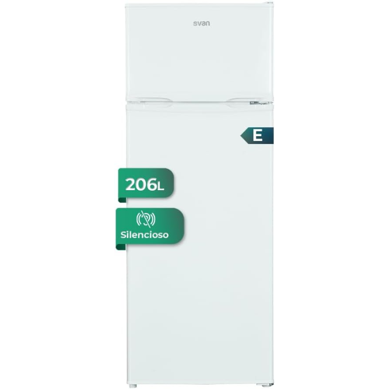 Este frigorífico combi de SVAN tiene dos puertas, una para el refrigerador y otra para el congelador. Es fácil de usar, gasta poca electricidad y tiene espacio suficiente para guardar comida para una familia o pareja. Es silencioso, práctico y se adapta bien a cualquier cocina. Ideal para quienes buscan algo funcional sin complicaciones.