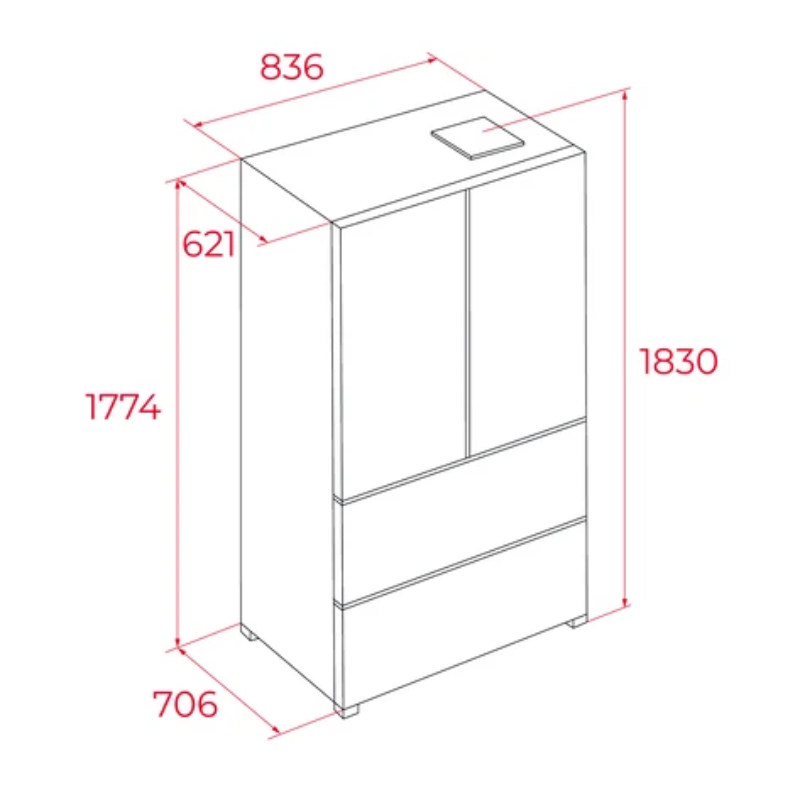 – Dimensiones: 183 cm de alto x 83,6 cm de ancho x 74,3 cm de fondo