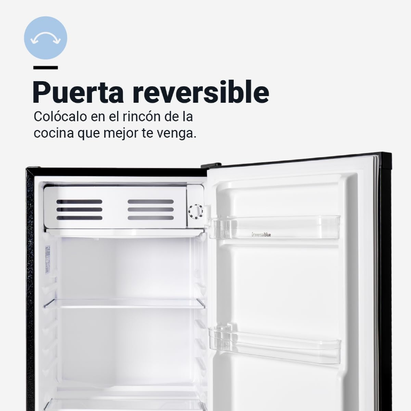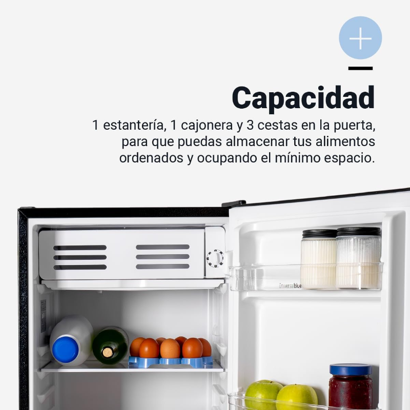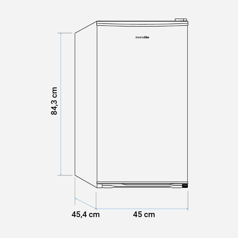 El UNIVERSALBLUE Frigorífico Bajo Encimera Mini es un electrodoméstico compacto diseñado para conservar alimentos y bebidas en espacios reducidos. Es ideal para personas que viven solas, estudiantes, oficinas, segundas residencias o como frigorífico auxiliar en el hogar. Su tamaño permite colocarlo fácilmente bajo encimeras o en lugares con espacio limitado, sin renunciar a la funcionalidad básica de refrigeración.